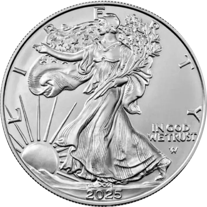 Awers przedstawia personifikację Wolności, symbol Stanów Zjednoczonych i wyzwolenia, kroczącą z atrybutami pokoju: gałązką oliwną oraz pochodnią. U jej stóp widać siedzibę Kongresu USA, a w tle promienie słońca. Awers zawiera maksymę, która została zawarta w Deklaracji Niepodległości – “In God We Trust” (Bogu Ufamy). Wizerunek monety pozostaje niezmienny od samego początku bicia srebrnych orłów – 1986r. Za projekt odpowiada Adolph Weinman.