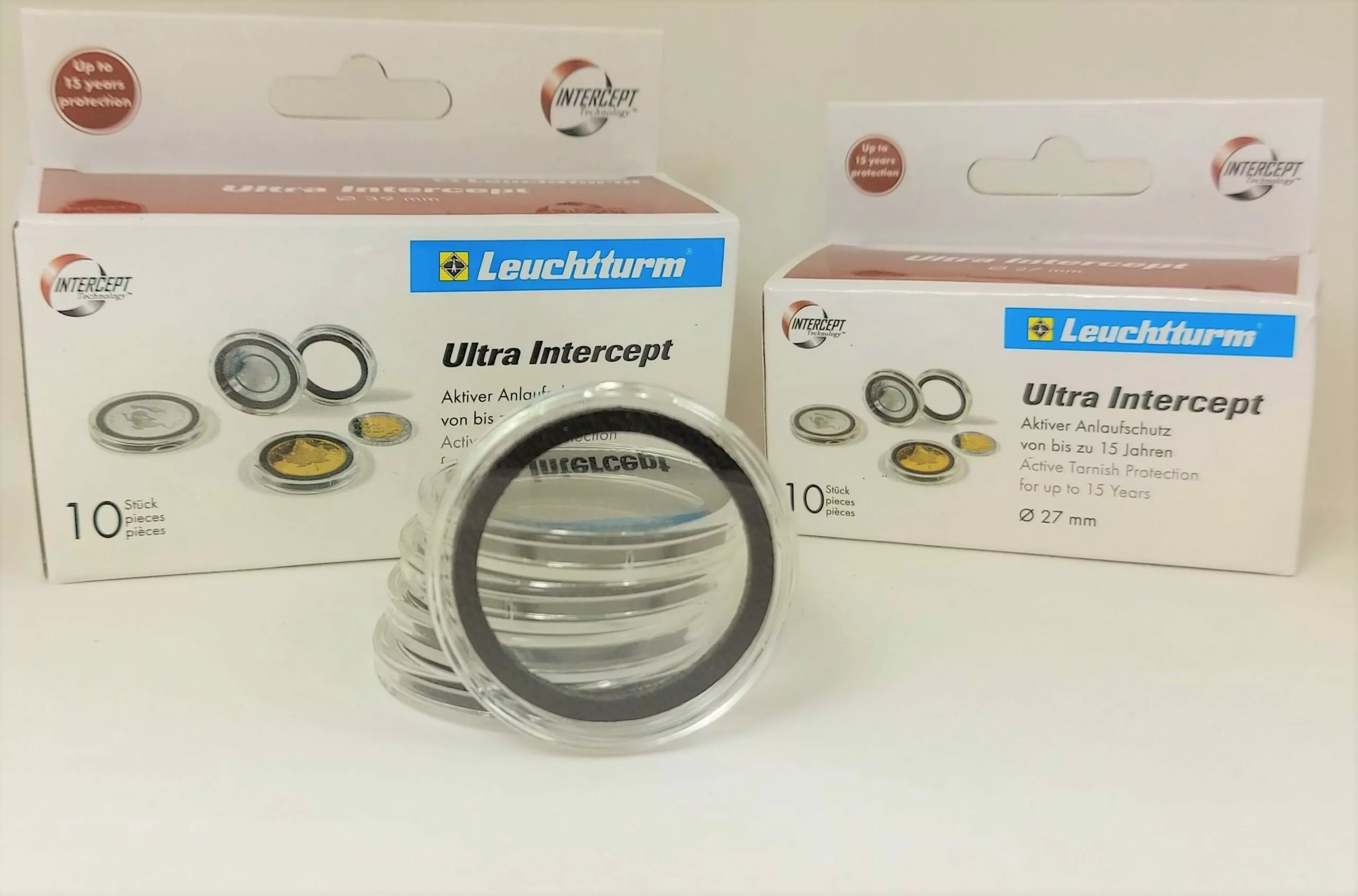 Plastikowy kapsel ultra intercept o średnicy 33 mm umożliwia przechowywanie monet oraz stanowi ochronę przed matowaniem monet.Wewnątrz kapsla znajduje się specjalna pianka o grubości 3mm. Materiał wzbogacono o cząsteczki miedzi, które powstrzymują gazy powodujące korozję i neutralizują szkodliwe substancje atmosferyczne.