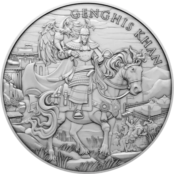 Moneta oddaje hołd legendarnemu Czyngis-chanowi – wizjonerskiemu przywódcy i twórcy potężnego imperium mongolskiego. Po latach jednoczenia rozproszonych plemion mongolskich rozpoczął bezprecedensową serię kampanii wojennych, podbijając rozległe tereny Chin oraz Azji Środkowej i tworząc jedno z największych imperiów w dziejach ludzkości. Jego imię do dziś symbolizuje siłę, strategię i bezkompromisowe przywództwo.