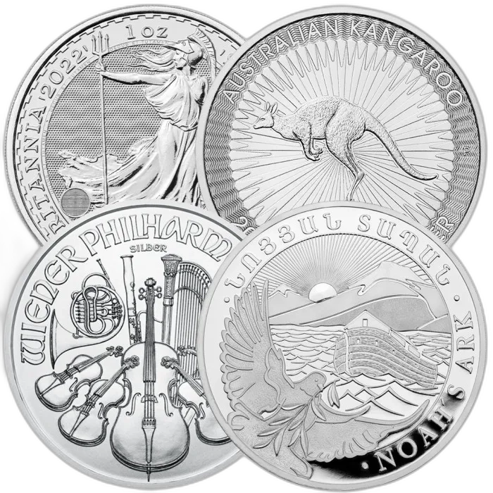 W naszej ofercie znajdziesz najpopularniejsze srebrne monety takie jak: Wiedeński Filharmonik, Kanadyjski Liść Klonowy, Britannia, Kangur, Krugerrand, Arka Noego, Liść Klonowy Byk i Niedźwiedź, Bogini Europa, i inne.