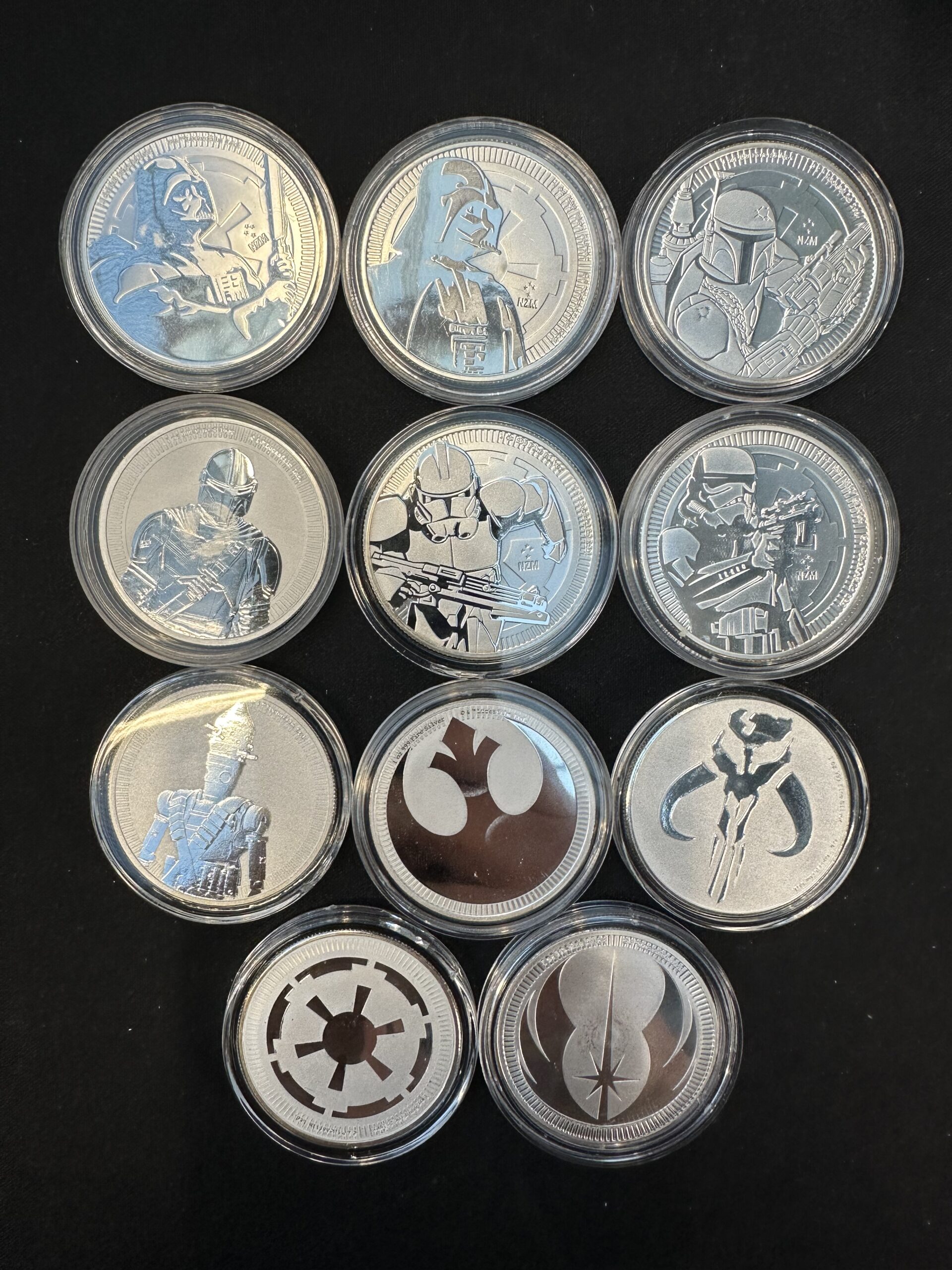 Srebrna moneta Star Wars 1 uncja – losowe lata to atrakcyjna propozycja dla inwestorów oraz fanów kultowego uniwersum Star Wars, łącząca wartość inwestycyjną srebra z rozpoznawalnymi motywami filmowymi. Monety emitowane są w imieniu Niue, natomiast ich produkcją zajmuje się renomowana mennica New Zealand Mint, specjalizująca się w licencjonowanych emisjach kolekcjonerskich.